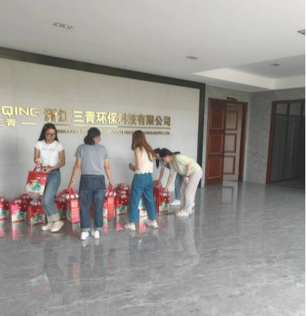 又是一年端午节,情浓粽香飘满街。浓浓粽香,绵绵情长。在端午节即将来临之际,为感谢全体员工一直以来为公司发展付出的辛勤努力,2024年6月3日下午,浙江三青环保科技有限公司心系员工,为全体员工提前发放端午福利,让员工深切感受到了企业大家庭的关怀和温暖。中午 11:30分,福利发放工作在三青环保上虞总部行政部的组织安排下有条不紊的进行,大家相互配合搬运、分配、分发端午福利:福满五芳,粽情五月。一份粽子、一份关怀,粽子带来的不仅是味觉上的享受,更多的是美好的祝福!