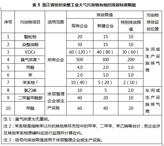 目前我国印染行业大气污染物排放标准正在制定,国内只有浙江省颁布了《浙江省纺织染整工业大气污染物排放标准》(DB33/962-2015),其他省份地区目前仍在执行《大气污染物综合排放标准》或当地的大气污染综合排放标准。